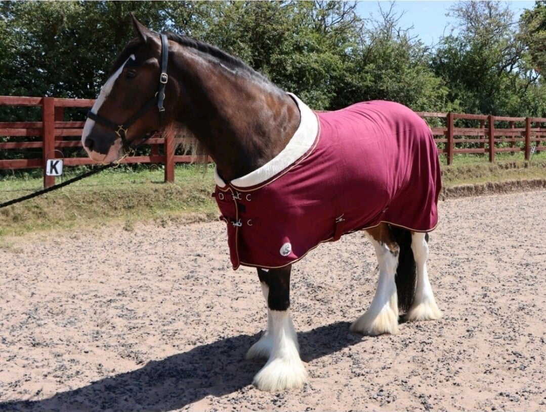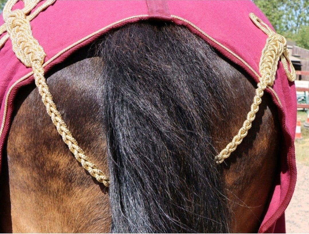 Beautiful and elegant fleece show rug with fancy gold stitching on the rear quarters.