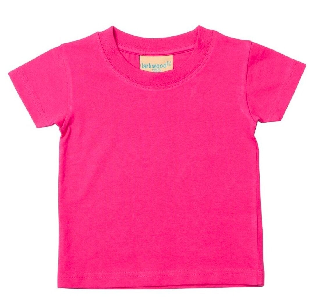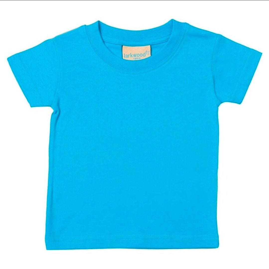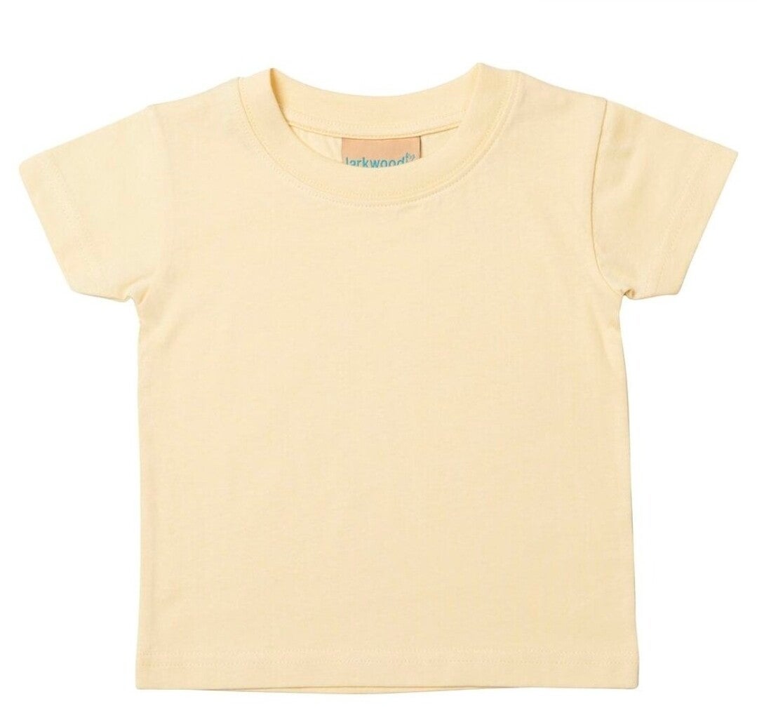 Larkwood Baby/Toddler T-Shirt made from soft and easy-to-care-for 100% single jersey cotton. This t-shirt has a crew neck, set in sleeves and twin needle stitching at the neck, hem and cuffs. 16 unisex colours.